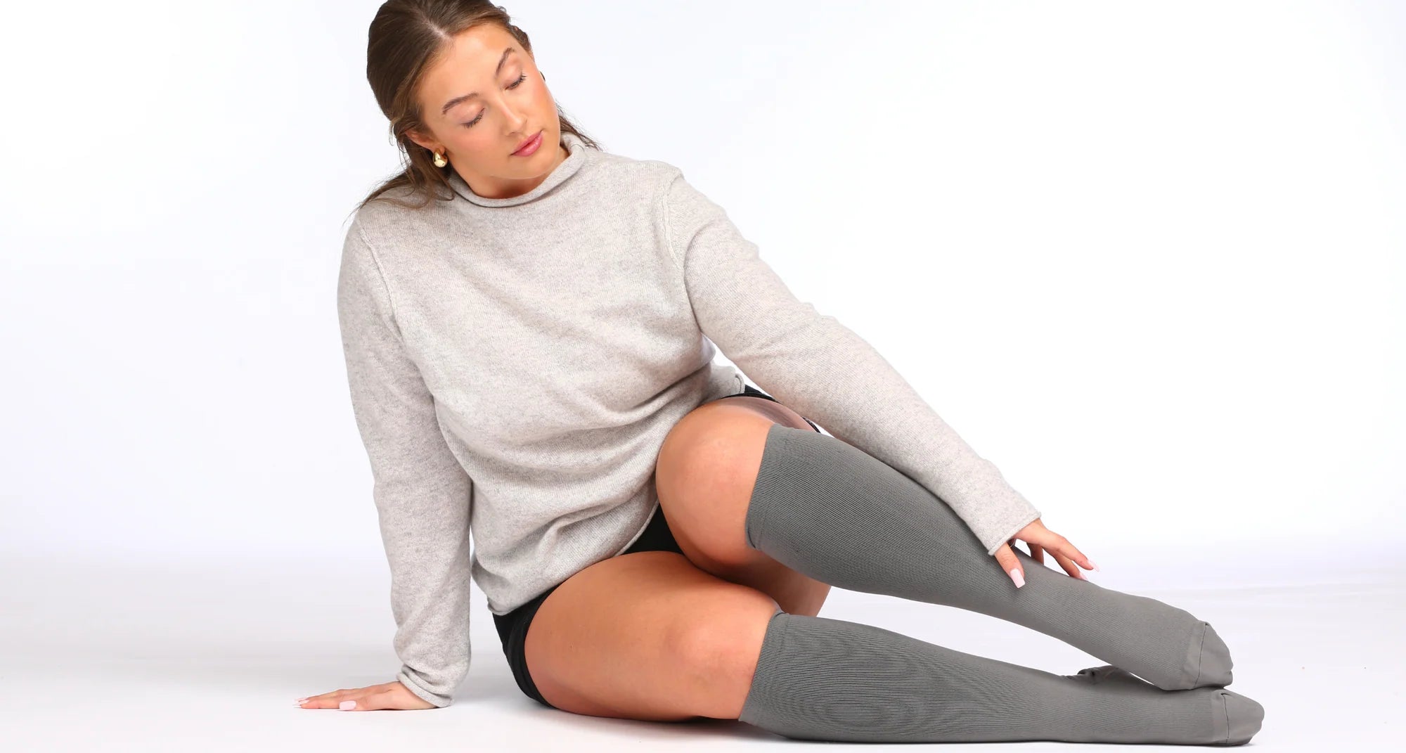 Nossas meias de compressão usam uma compressão graduada de 15-20 mmHg, oferecendo o equilíbrio perfeito entre suporte e alívio sem parecerem muito apertadas.
